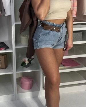Model na ramiączkach z ozdobnym zamkiem z przodu.